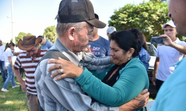 Entre lágrimas, Don Abrahán Fehr se fundió en un abrazo con Obdulia Florenciano y Apolonio Morínigo, padres del suboficial de Policía. Ambas familias son víctimas del autodenominado Ejército del Pueblo Paraguayo (EPP).